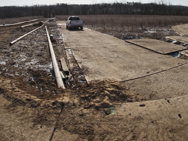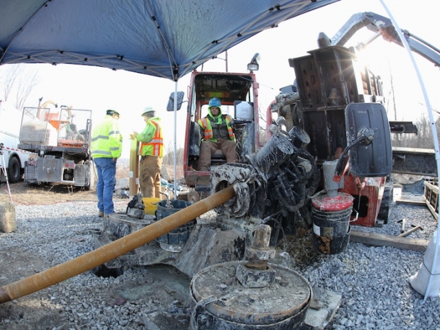 What challenges/obstacles overcame? Bitter cold winter with limited daylight hours forcing shorter work days. Plotting and steering of the drill bits needed to be accomplished manually due to electromagnetic fields emitted from nearby high-voltage power lines which interfered with our wireline guidance system. The challenging ground conditions of glacial till mixed with boulders in addition to protocols for working in protected wetland areas were further complicated by a deep ground freeze and heavy ice. The sub- zero temperatures also mandated that advanced mitigation measures be employed to ensure against freezing of the slurry and fluids involved in the drilling process.