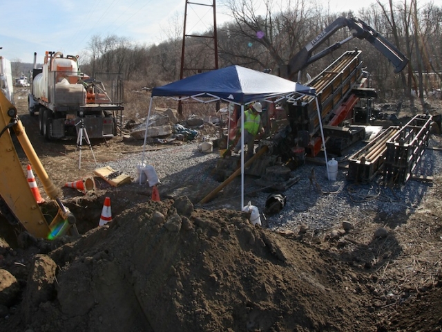 What were specs of the job? We bored over 1200 linear-feet for a new 8-inch steel gas main, 500 feet of which we installed under the Mohawk River. We also installed a 700 linear-foot section of 6-inch steel gas main under a busy section of railroad tracks which run along the north side of the river.